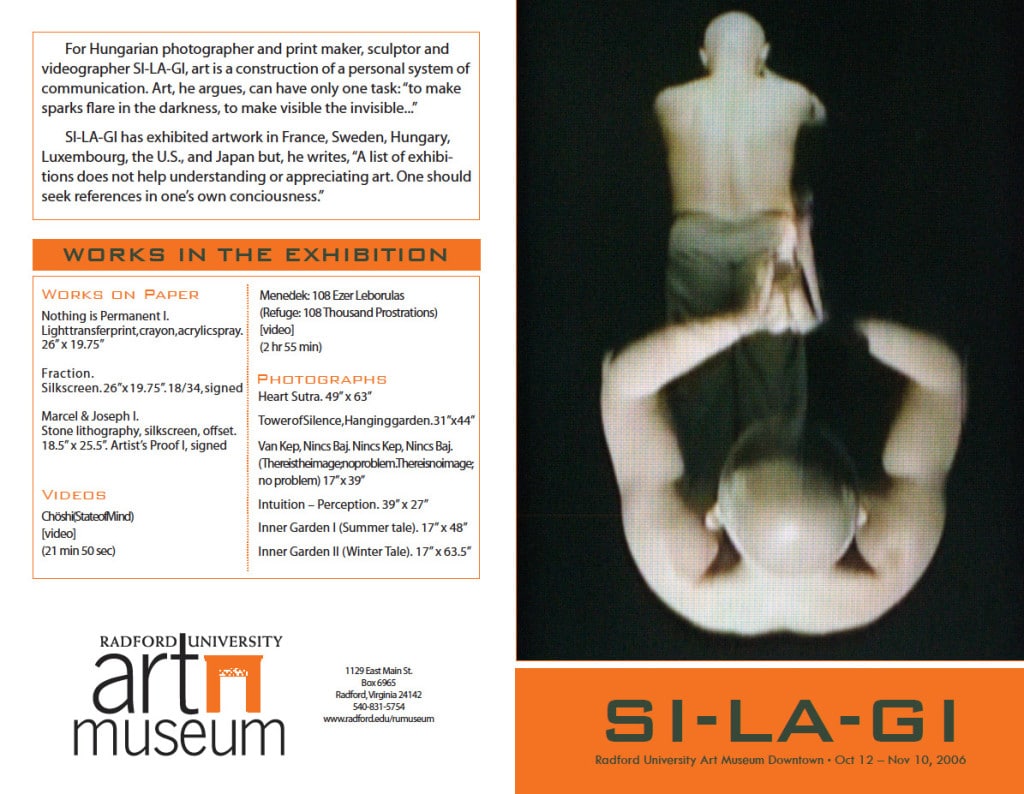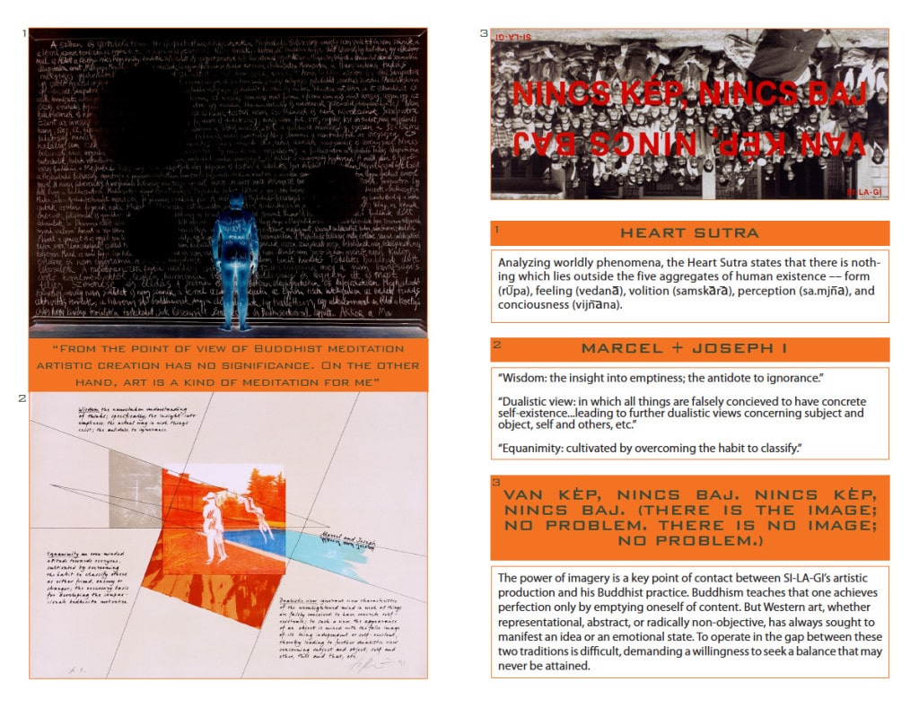 “SI-LA-GI’s work creates tension between western art and eastern philosophy. Western art always has content (tells a story), whereas Buddhist philosophy teaches that spiritual success is obtained only by emptying oneself of content.”